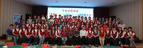 中国女摄影家“走湖北访革命老区、送文化进红色大悟”摄影采风活动联欢晚会结束后,领导、嘉宾和姐妹们合影留念。